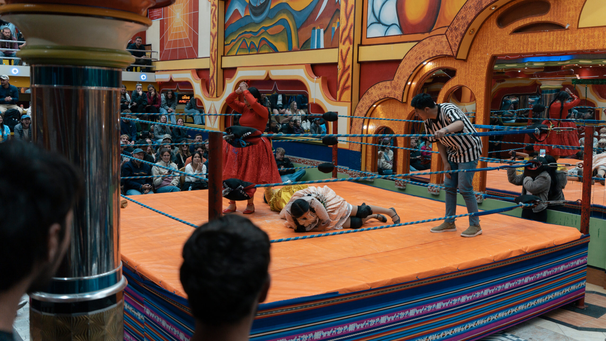 Another absolute must-do was Cholita wrestling — local women wrestling in traditional dresses. It’s theatrical, loud, chaotic, and ridiculously fun. We booked it via GetYourGuide since finding tickets independently was nearly impossible. Totally worth it.