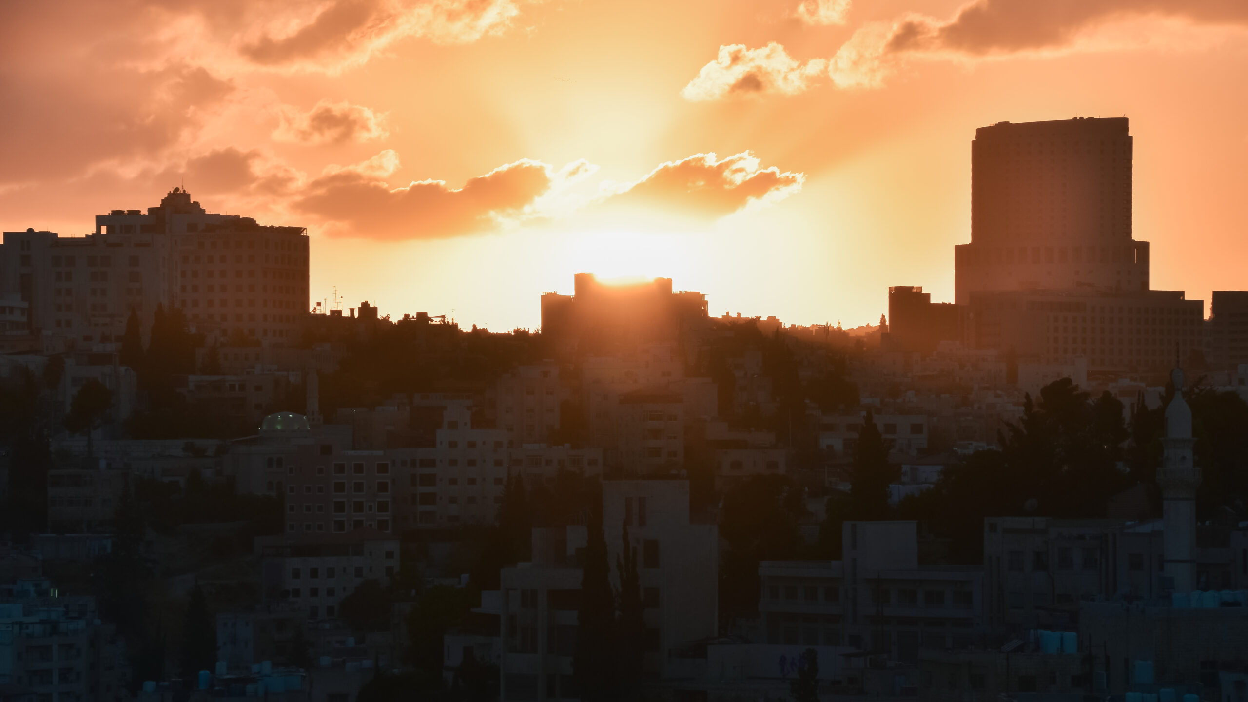 View from our hotel room – Lights of Jericho and Jerusalem in a distance, explosions heard.