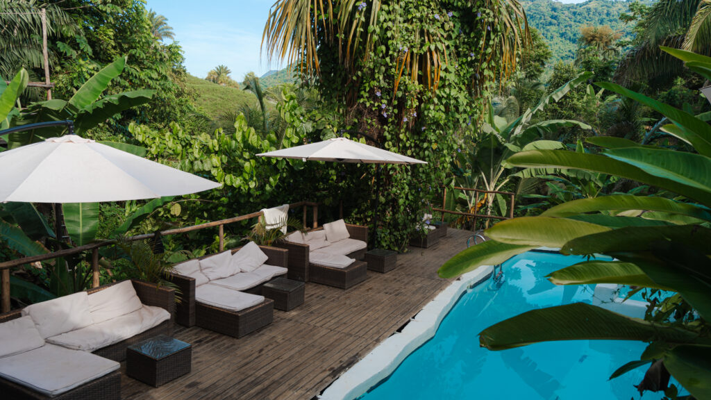 From Santa Marta, we took a one-hour bus to Tayrona and checked into The Valley Hostel, a jungle lodge just outside the park. Our private cabin had only a roof and a mosquito net around the bed — no proper walls — meaning we could hear every sound of the jungle at night. It was an incredible experience. Add a hilltop pool, giant hammocks, great breakfasts, and occasional BBQ nights, and it became one of the highlights of our Colombia trip.